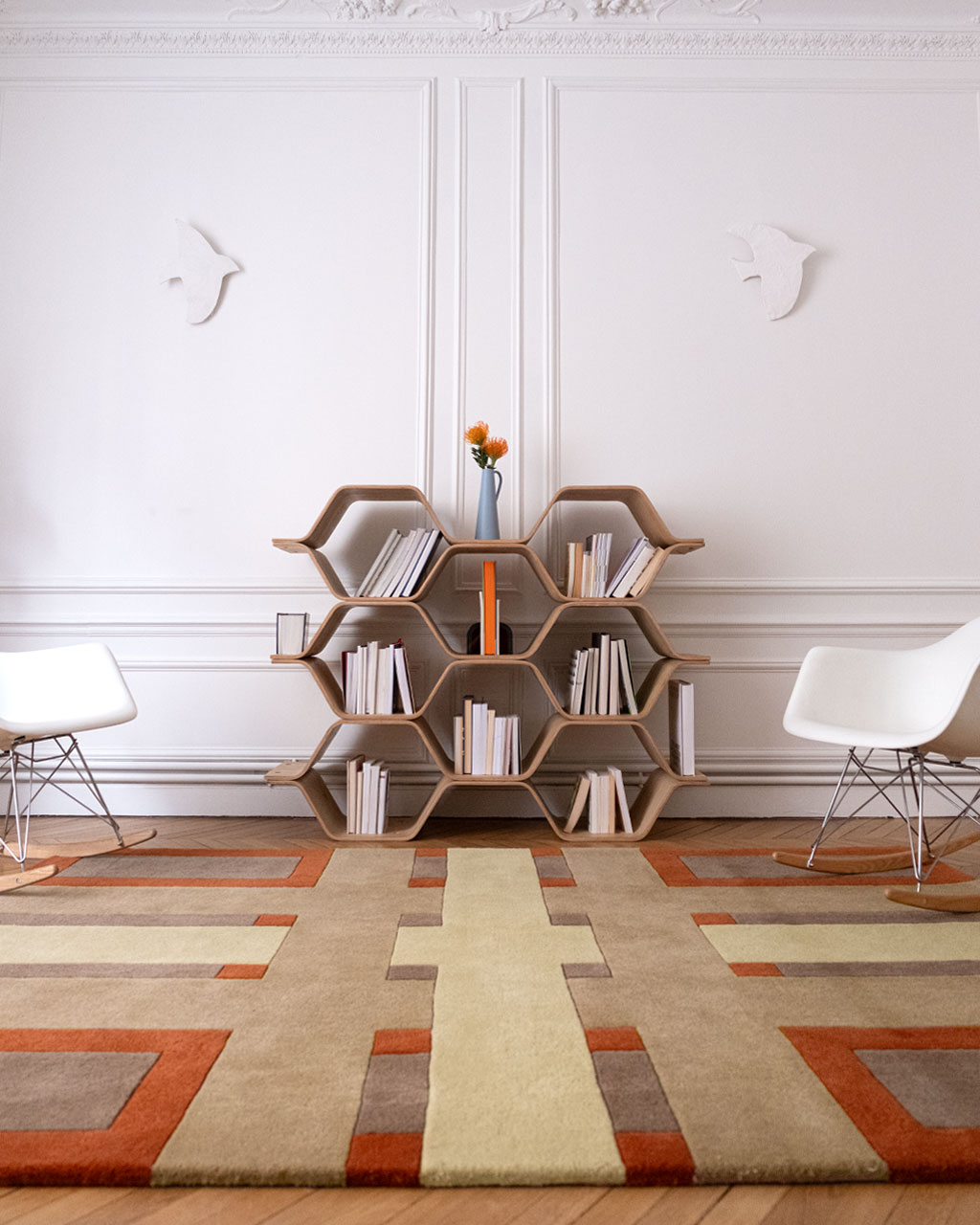 Plus architectural que décoratif, le tapis Camille orange agit comme un élément de composition à part entière : il structure visuellement la pièce, dialogue avec le mobilier et souligne les volumes. Il s’intègre naturellement dans des intérieurs contemporains, mais trouve aussi sa place dans des ambiances plus intemporelles où la couleur devient un point focal maîtrisé.